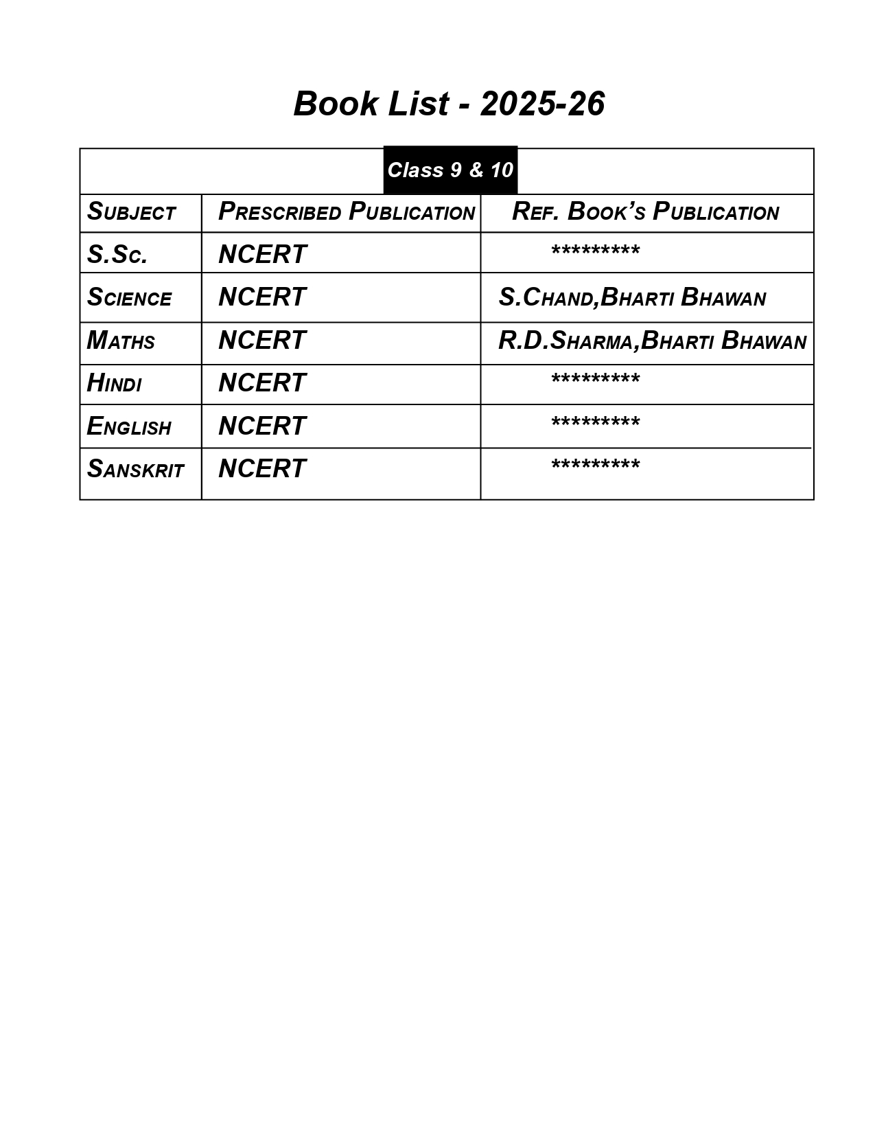 Book list 2025-26